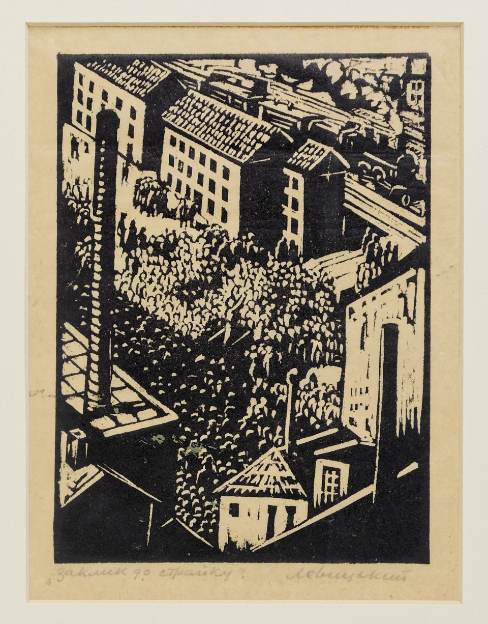 Leopold Iwanowicz Lewicki (1906 - 1973) - Zgromadzenie na rynku, drzeworyt, sygn. p.d. cyrylicą: "L.I.Lewicki", 16 x 11,5 cm